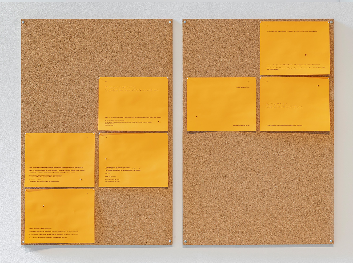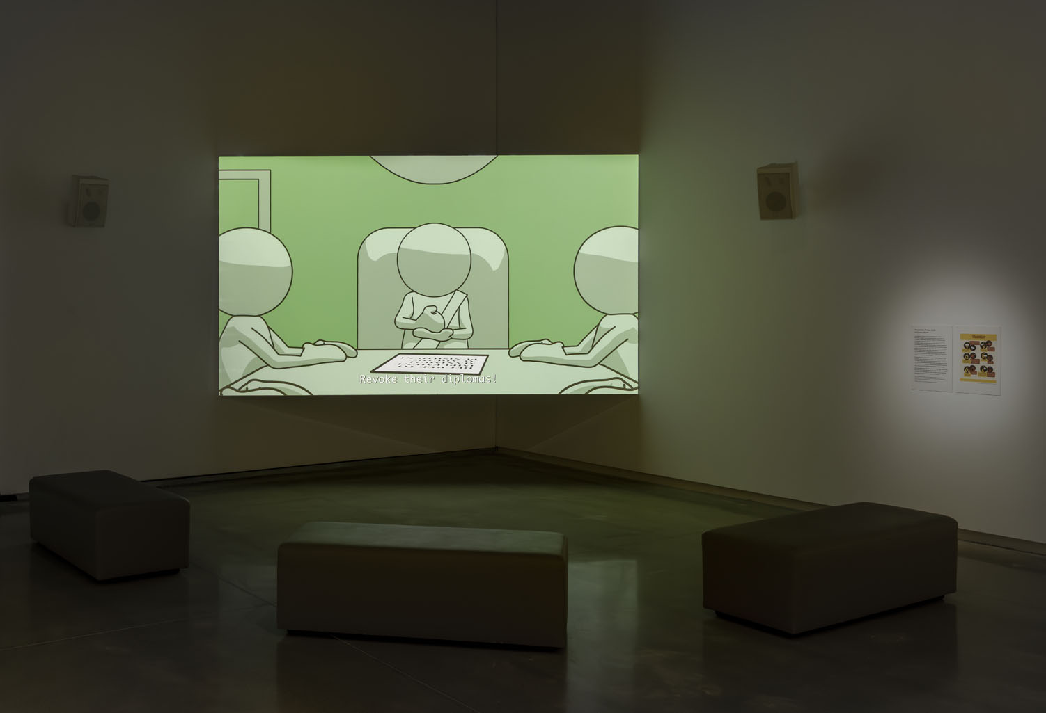 Some of the artworks are based on my formative encounters with systems of individual ranking and assessment. Others derive from the past couple years of institutional hypocrisy and complicity in genocide. The exhibition looks at how these two things are related: how humanity, when defined as achievement, is quickly made worthless.